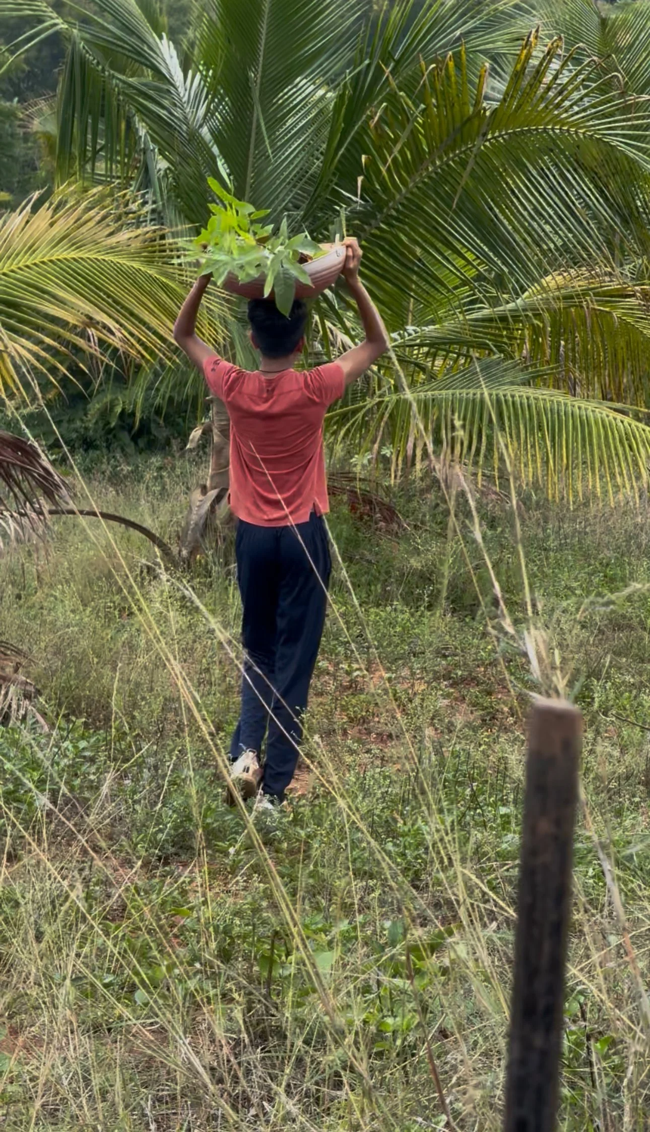We love nature and adventure. Our goal is to turn a contemporary Mango and Coconut orchard into a agro-forest blending traditional Indian and Japanese farming techniques. Our fruit orchard is moving towards being completely rainwater harvested and run on solar energy to create a net positive impact on the planet.